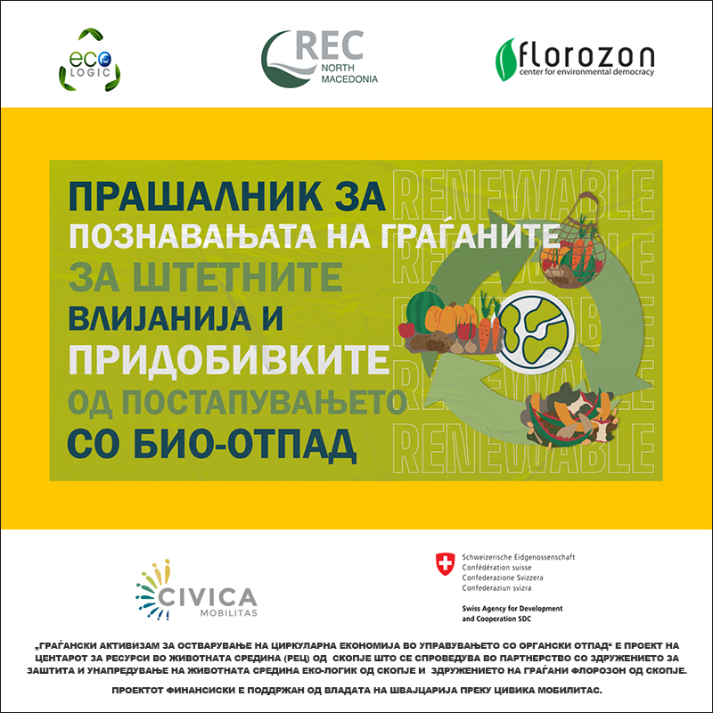 Анкета во рамките на проектот „ГРАЃАНСКИ АКТИВИЗАМ ЗА ОСТВАРУВАЊЕ НА ЦИРКУЛАРНА ЕКОНОМИЈА ВО УПРАВУВАЊЕТО СО ОРГАНСКИ ОТПАД“